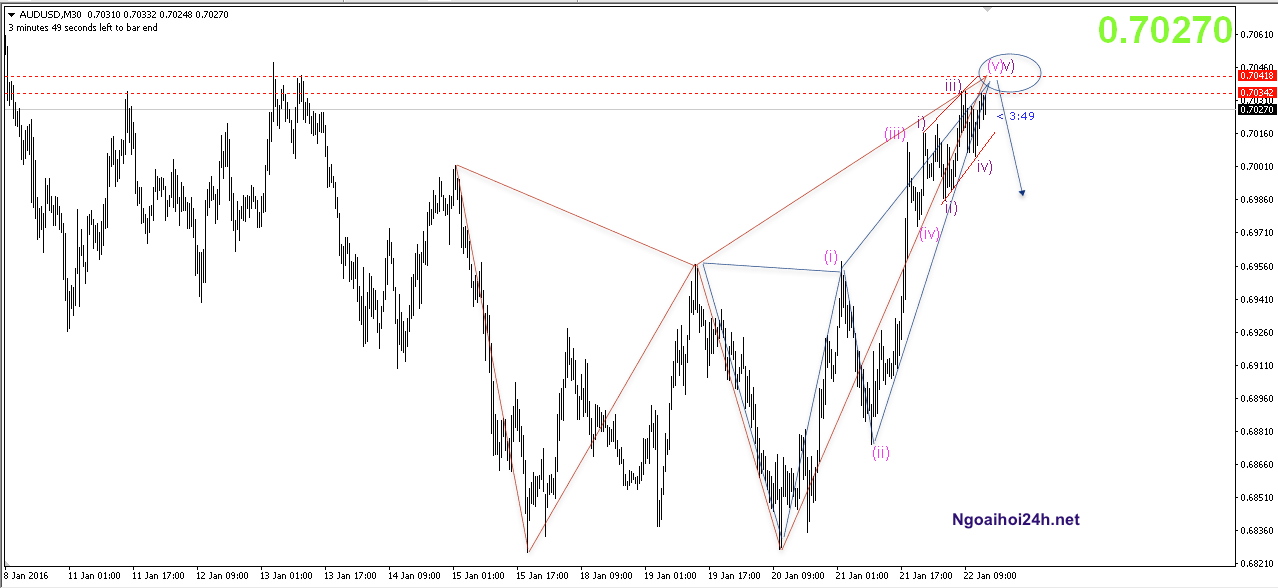Phân tích AUDUSD bán theo harmonic + eliott wave: Tối nay là tối thứ 6, cuối tuần anh em cũng hạn chế đấm đá tránh kẹt lệnh sang tuần nhé 🙂
