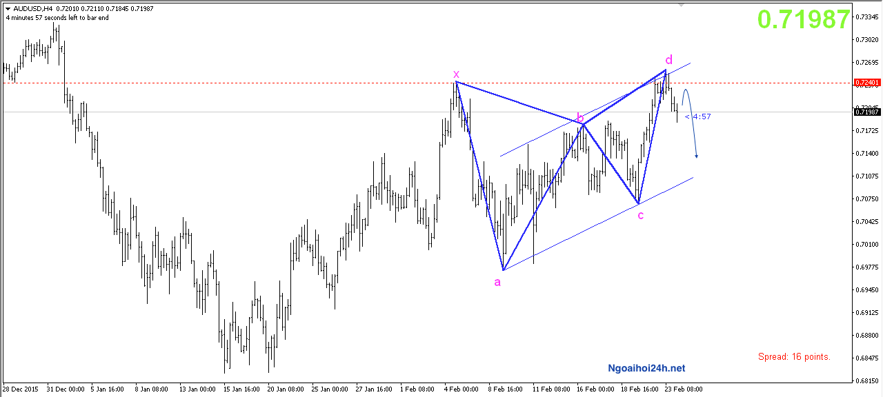 Thứ 2: Mô hình harmonic ” Bearish butterfly” có dấu hiệu hoàn thiện ở khu vực 0.724x.