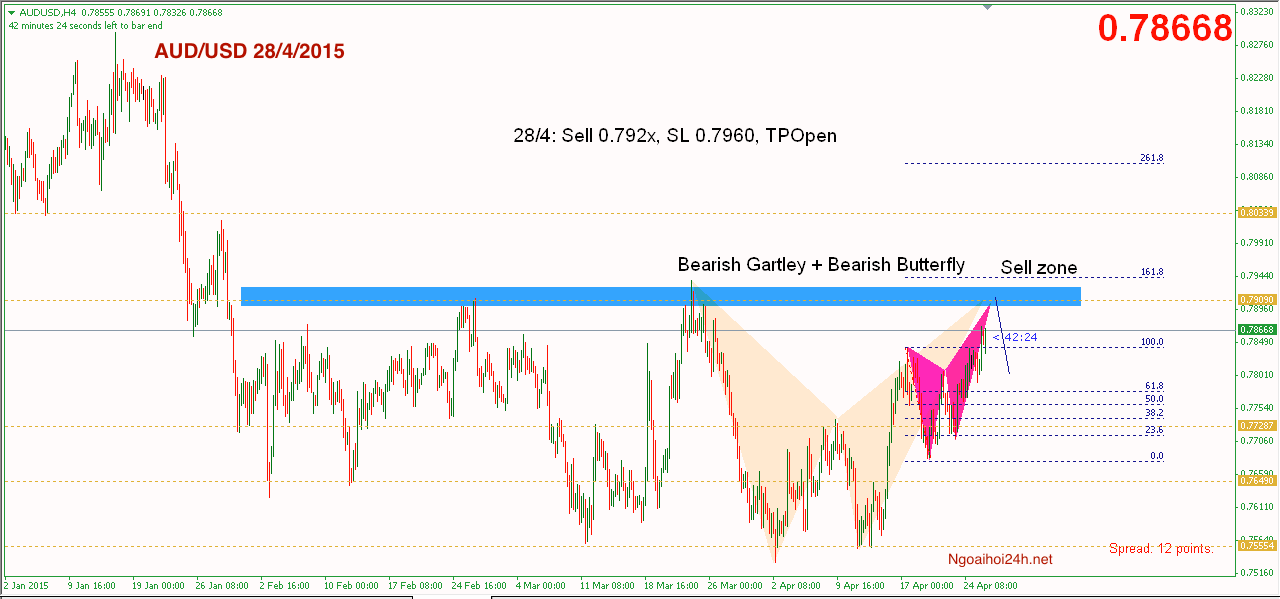 ==> Chiến lược tham khảo 28/4: AUDUSD chờ sell 0.792x, sl : 0.7960, TP : Open.