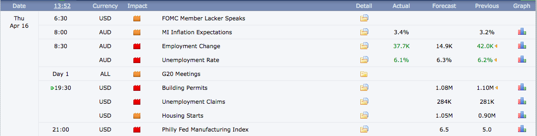 Sáng nay 8h30 sáng theo giờ VN thì đồng úc đón nhận 2 tin tốt là “Employment change- thay đổi việc làm” và ” Unemployment rate- tỷ lệ thất nghiệp”. Như các bạn xem hình dưới thì số liệu thực tế phát đi tốt hơn dự báo ==> tốt cho AUD.