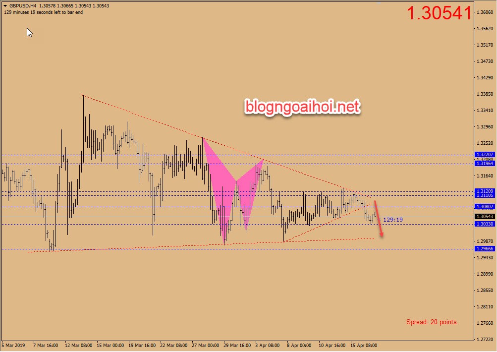 Bài phân tích trước đó của chúng tôi có nhắc đến vùng bán quanh 1.31 về 1.30, và GBPUSD đang di chuyển theo đúng kịch bản. Biểu đồ dưới đây được sử dụng cho lần cập nhật trước.