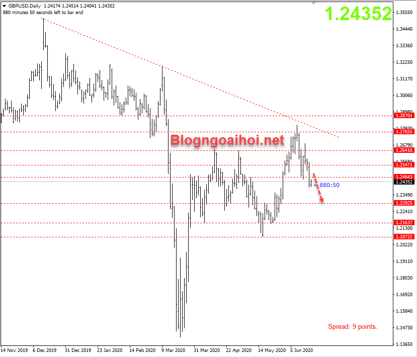 Chiến lược tham khảo : GBPUSD 19/6- Canh bán khi GBPUSD tiếp cận vùng 1.247-1.25 mục tiêu 1.23.