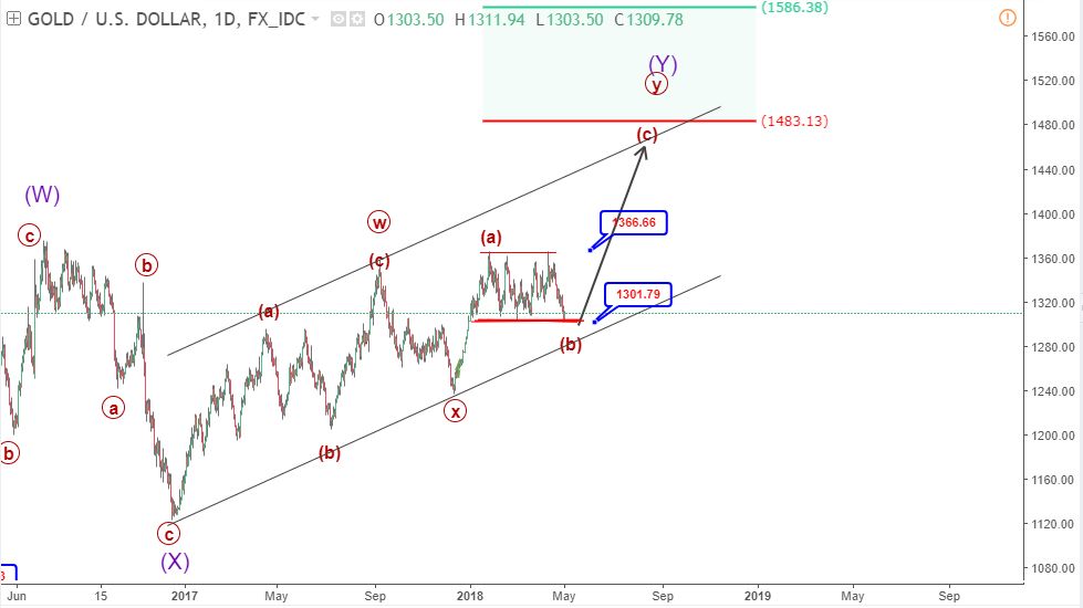 Tháng trước Gold hit 1365 (gần 1366 ) và hiện đã giảm hơn 600 Pips để giao dịch gần ngưỡng hỗ trợ 1301. Giá sẽ phá vỡ dưới ngưỡng hỗ trợ 1301 cho một động thái giảm giá tự nhiên hoặc tăng về phía ngưỡng đỉnh tại 1366? Trong phân tích dưới đây, chúng tôi sẽ xem xét điều này từ quan điểm lý thuyết sóng Elliott và đưa ra các dự báo dài hạn và trung hạn.