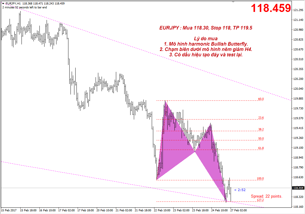 + EURJPY cũng có dấu hiệu cho mua.