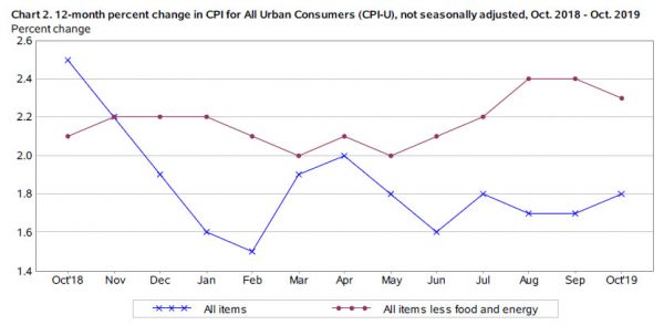 CPI Mỹ tăng 0,4% trong tháng 10 so với kỳ vọng 0,3%. CPI cơ bản tăng 0,2%, kỳ vọng phù hợp. Hàng năm, Dữ liệu CPI tăng tốc lên 1,8% yoy, tăng từ 1,7% yoy và đánh bại kỳ vọng 1,7% yoy. Mặt khác, chỉ số CPI đã chậm lại ở mức 2,3% yoy, giảm từ 2,4% yoy và bỏ lỡ kỳ vọng 2,4% yoy.