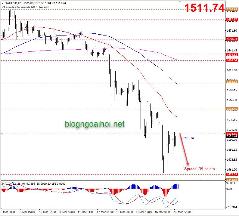 Phân tích Vàng 18/3- Vàng thế giới có ngày tăng điểm trở lại sau chuỗi ngày giảm điểm thê thảm. Mức tăng khoảng 90$ từ mức thấp trong ngày 1465 lên mức cao trong ngày ở 1554. Hiện tượng bán tháo mạnh trước đó dẫn đến “Qúa bán” đối với vàng và dữ liệu bán lẻ của Hoa Kỳ công bố không được tốt là nguyên nhân khiến Vàng hồi phục.