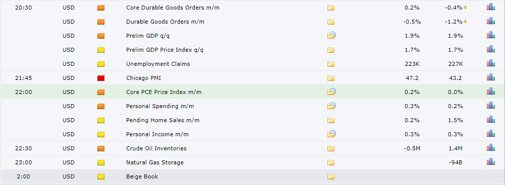 Hôm nay thì hàng loạt dữ liệu kinh tế Hoa Kỳ được lên lịch công bố như đơn đặt hàng lâu bền, GDP, PMI bang chicago, PCE… sẽ có ảnh hưởng mạnh đến sự di chuyển của vàng trước ngày Mỹ nghỉ lễ tạ ơn vào thứ 5.