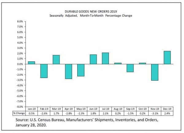 Đơn đặt hàng lâu bền của Mỹ đã tăng 2,4% lên mức 245,5 tỷ USD trong tháng 12, cao hơn kỳ vọng 1,2%. Tuy nhiên, các đơn đặt hàng vận chuyển cũ giảm -0,1%, bỏ lỡ kỳ vọng 0,4%. Đơn đặt hàng phòng thủ giảm -2,5%.