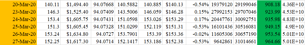 Mỹ đã thông qua và ký một dự luật kích thích trị giá 2000 tỷ đô vào thứ Sáu tuần trước. Đây là dự luật kích thích kinh tế lớn nhất trong lịch sử nước mỹ. Tuy nhiên, trọng tâm hiện tại vẫn là phòng ngừa và kiểm soát dịch bệnh. Vào buổi sáng hôm nay số lượng chẩn đoán được xác nhận tại Hoa Kỳ đã đạt mức 142.178 ca nhiễm,soái ngôi của trung quốc hiện tại đang là nước đứng đầu về số ca nhiễm trên thế giới. Dựa vào các nguồn dữ liệu kinh tế và các gói trợ cấp được tung ra liên tục, cho thấy hoạt động kinh tế của Mỹ đã rơi vào tình trạng trì trệ nghiêm trọng.