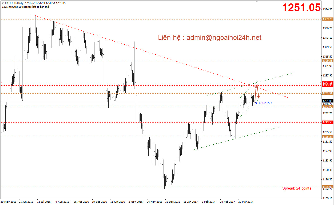Dự đoán biên độ hôm nay chạy lên hoặc chạy xuống tầm 25$-30$. Nghĩa là các tin mỹ xấu có thể giúp vàng tăng thêm 25-30$. Các tin mỹ mà tốt thì có thể giúp vàng giảm điểm mạnh cũng tầm khoảng 25-30$.