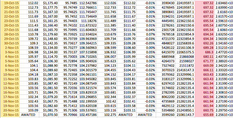 Theo số liệu từ Exchange Traded Gold chốt phiên giao dịch hôm qua thứ Hai ngày 23/11/2015 Quỹ tín thác vàng lớn nhất thế giới SPDR® Gold Shares (GLD) đã tiếp tục bán ra 5.06 tấn vàng, đây là phiên bán ra thứ 68 của quỹ này trong năm 2015.