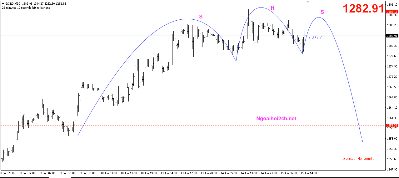 Còn trên M30 cũng xuất hiện mô hình vai đầu vai, nếu giá vàng không phá đỉnh ngày hôm qua ở 1289.