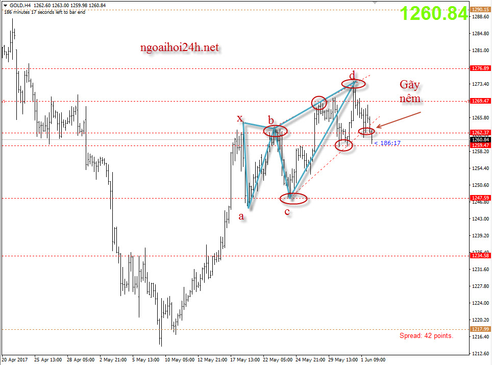 Bài phân tích ” Vàng đang được hỗ trợ tăng tốt” đã phát huy tác dụng, giá vàng đã giảm trở lại theo mô hình harmonic. Tuy nhiên giá cũng chưa lên đến vùng bán như chúng tôi đề cập ở quanh 1276/1278. Tuy nhiên thì mô hình này đang phát huy tác dụng.