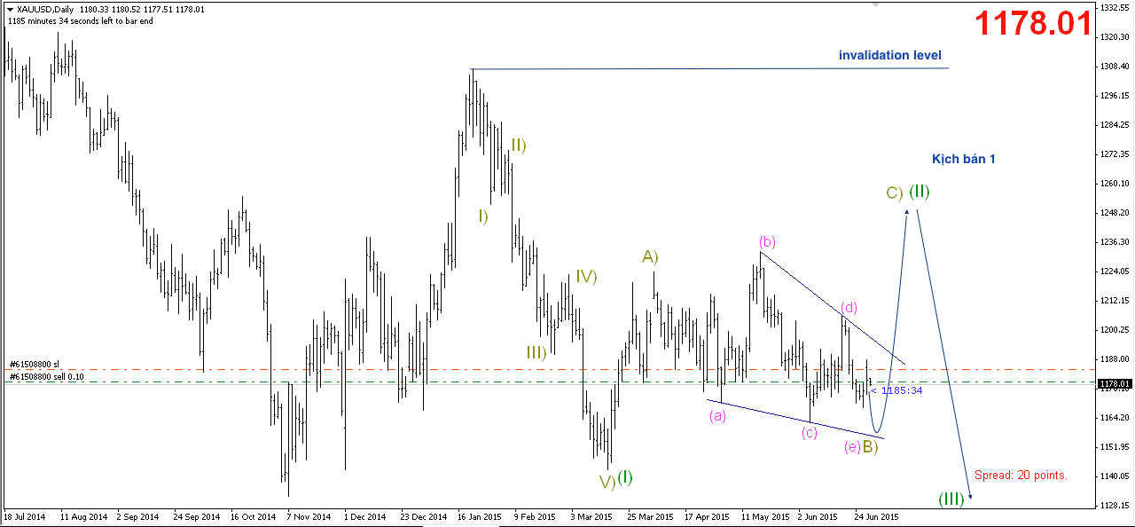 Hôm nay mỹ nghỉ lễ, nên có thể sẽ không có nhiều biến động lớn xảy ra với vàng. Tuy nhiên các bạn cần chú ý chủ nhật này tức là 5/7 Hy lạp trưng cầu dân ý về việc có ở lại hay không ở lại euro. Vì vậy sáng thứ 2 tuần sau khả năng tiếp tục lại có GAP đối với vàng và EU. Vì thế các bạn nên cân nhắc các lệnh nên xử lý sao cho hợp lý vào ngày hôm nay.
