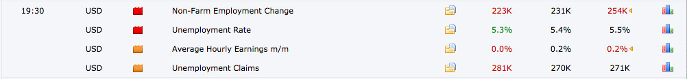 Theo đó, NFP kỳ này xấu hơn kỳ trước con số kỳ này 223k thấp hơn so với kỳ trước là 254k ( con số này đã được sửa lại lúc đầu là 280k). Về cơ bản, tin NFP xấu đã giúp vàng không giảm sâu trong ngày hôm qua. Tuy nhiên tỷ lệ thất nghiệp mỹ thực sự rất tốt khi kỳ này giảm xuống còn 5.3%, là một tín hiệu khá tốt để mỹ có thể triển khai kế hoạch nâng lãi suất sớm hơn.