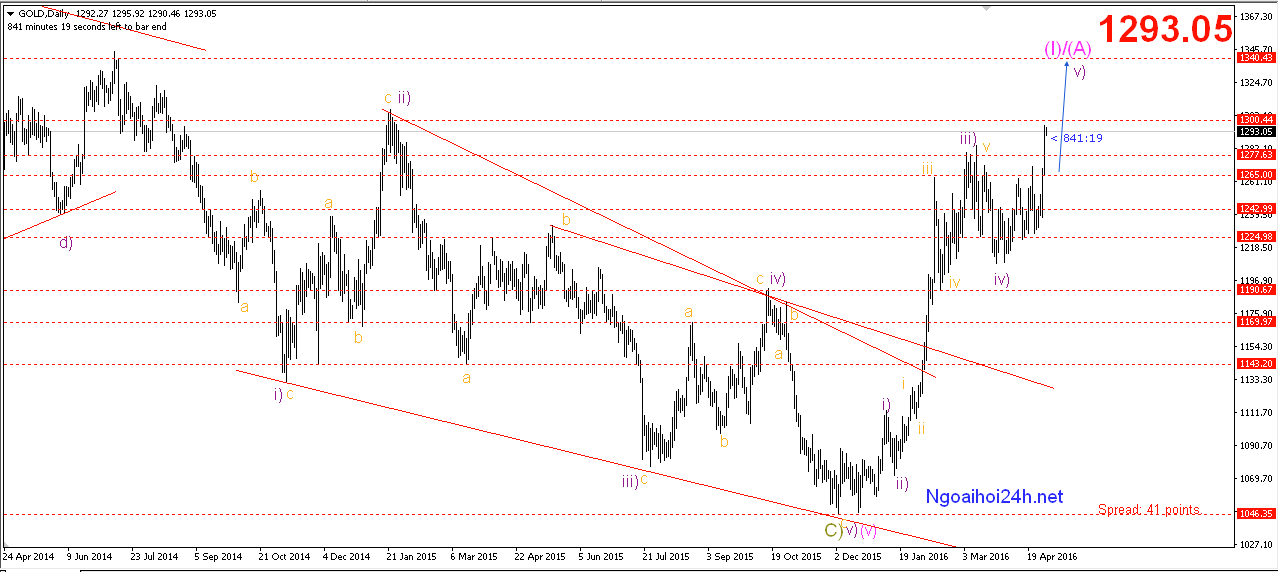 Phân tích Vàng tăng hoàn thiện sóng elliott wave.