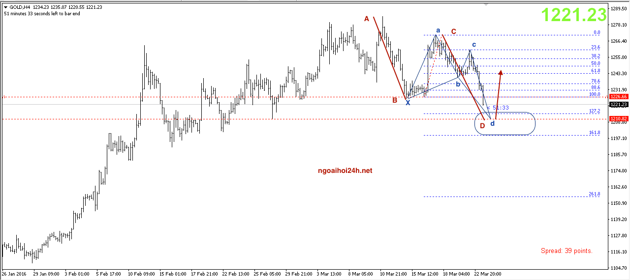 Lý do blog ngoại hối chọn vùng 1211-1214 là bởi ở đây có thể hoàn tất 2 mô hình harmonic có thể giúp vàng bật lên lại.