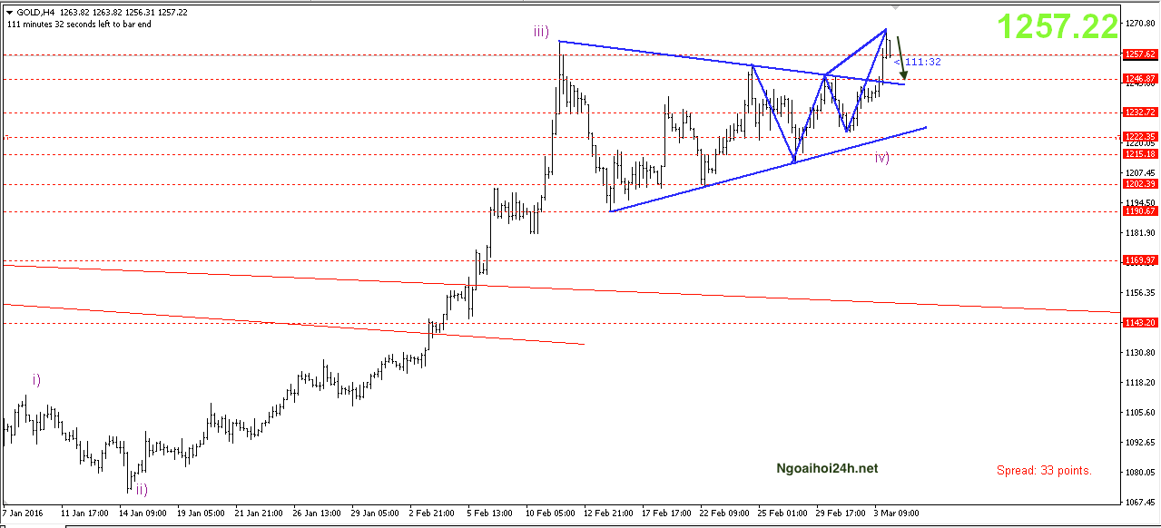 Phân tích Vàng trước bảng lương phi nông nghiệp non-farm- Giá vàng hôm qua có ngày tăng khá mạnh, khi đạt mốc cao nhất 1268. Giá vàng tăng mạnh sau Số liệu công bố dường như ủng hộ quan điểm cho rằng Fed sẽ giảm tốc độ nâng lãi suất trong năm nay khi cho thấy, số đơn xin trợ cấp thất nghiệp trong tuần cuối cùng của tháng 2/2016 tăng 6.000 đơn lên 270.00 đơn, lĩnh vực dịch vụ của Mỹ trong tháng 2/2016 tăng trưởng với tốc độ chậm hơn so với tháng 1.