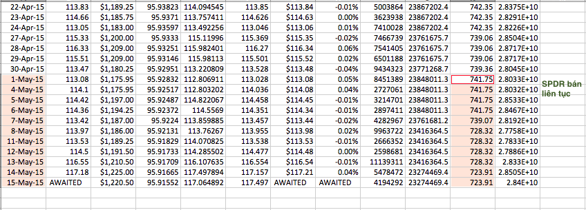 Tuy nhiên, 1 ông lớn nữa là Quỹ SPDR thì từ đầu tháng 5 tới giờ. Quỹ này chưa có một phiên nào mua vào, mà toàn bán ra với khối lượng lớn. Tính ra từ đầu tháng 5 tới giờ quỹ bán khoảng 18 tấn vàng. Lượng vàng nắm giữ hiện tại của quỹ này là 723,91 tấn.