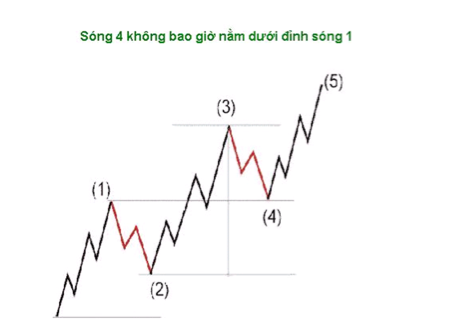 – Quy tắc 3: Sóng 4 không bao giờ nằm dưới đỉnh của sóng 1.