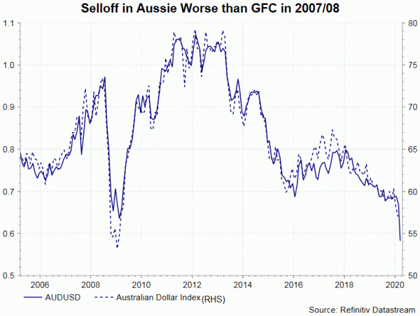 Các hành động không quá ngạc nhiên, đưa ra tuyên bố truyền thông của RBA vào đầu tuần này. Tại bản tuyên bố, ngân hàng trung ương đã cam kết sẵn sàng mua trái phiếu chính phủ Úc tại thị trường thứ cấp để hỗ trợ cho hoạt động trơn tru của thị trường đó, vì thanh khoản giao dịch đã giảm ở một số thị trường. Tuần trước, chính phủ Úc đã công bố kế hoạch kích thích tài chính trị giá 17,6 tỷ đô la Úc để chống lại virus, cũng như hỗ trợ nền kinh tế. Chúng tôi tin rằng động thái ngày nay chỉ là khởi đầu của chính sách nới lỏng tích cực của RBA.