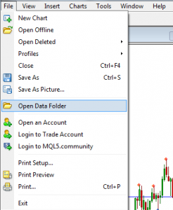 Bước 1: bạn mở thư mục Data Folder của mt4 theo đường dẫn: File>Open Data Folder.