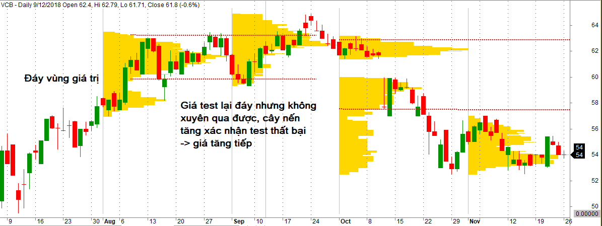 Tuy nhiên nếu test không thành công giá sẽ tăng lên lại và thoát khỏi vùng giá trị đi lên. Do đó mà giai đoạn test rất quan trọng để quyết định giá sẽ đi hướng nào