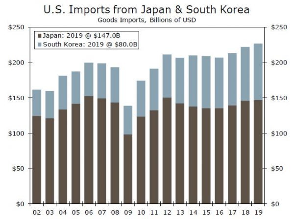 Như chúng tôi đã lưu ý trong một báo cáo gần đây , có thể có những tác động chuỗi cung ứng cho các doanh nghiệp Mỹ nếu các nhà máy Trung Quốc đóng cửa trong bất kỳ khoảng thời gian đáng kể nào và những cân nhắc tương tự dành cho cả Nhật Bản và Hàn Quốc. Vậy Hoa Kỳ nhập khẩu loại hàng hóa nào từ các nước này?
