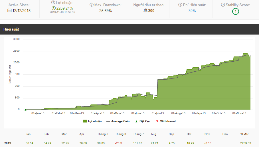 Với cách tính tỷ lệ này, 2 tài khoản của nhà cung cấp chiến lược và nhà đầu tư theo được đảm bảo thực hiện chiến lược giao dịch y hệt nhau. Từ đó dẫn đến kết quả giao dịch cũng y hệt nhau về tỷ lệ.
