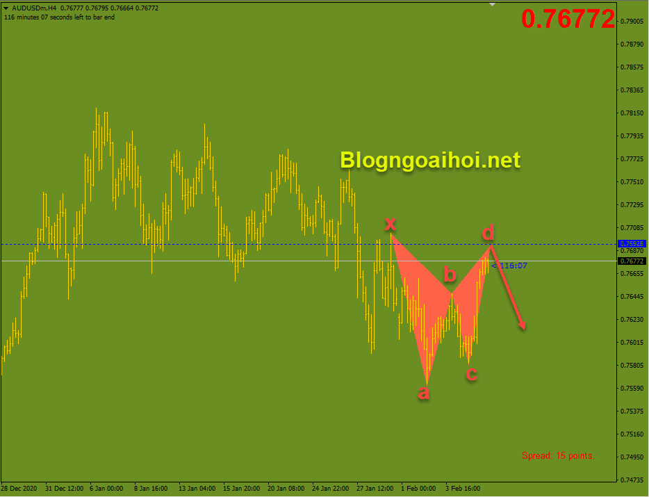 Kèo 2 : AUDUSD 8/2- Canh bán theo Harmonic.