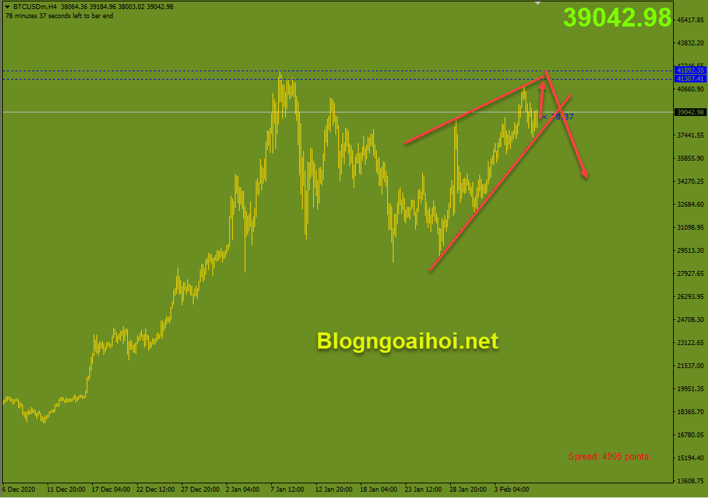 Bitcoin nếu tăng lên kiểm tra lại vùng đỉnh cũ thì có thể bán với kỳ vọng mô hình 2 đỉnh và kỳ vọng chạy theo nêm tăng với lần bật chạm vào biên trên là cơ hội để bán.