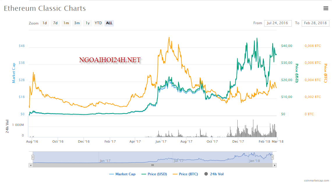 Tại thời điểm của bài viết này giá trị của một đồng ETC là $35,60 USD và tổng vốn hóa thị trường là $3.566.556.557 USD