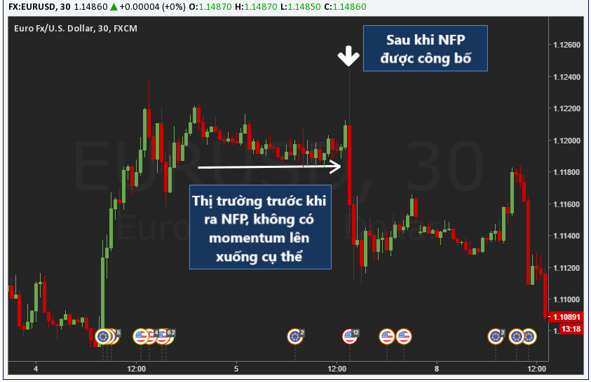 Nonfarm Payroll là một báo cáo về tin tức rất phổ biến và được nhiều người chờ đợi. Nên không có gì ngạc nhiên nếu trước khi NFP, thị trường hầu như không chuyển động nhiều và không tạo xu hướng gì cả bởi vì rất nhiều nhà đầu tư chờ đợi mà không giao dịch.