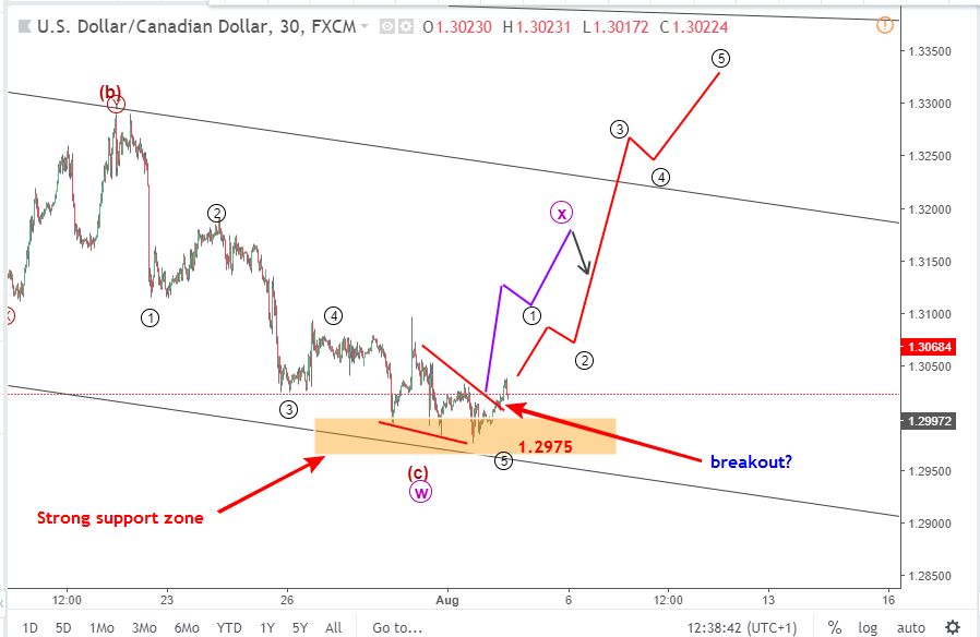 USDCAD 3/8- USDCAD đã trở lại trên mức 1.3 sau khi không thể phá vỡ dưới mức 1.295. Phân tích sóng Elliott 3 tháng 8 USDCAD sau đây xem xét những gì có thể xảy ra tiếp theo?