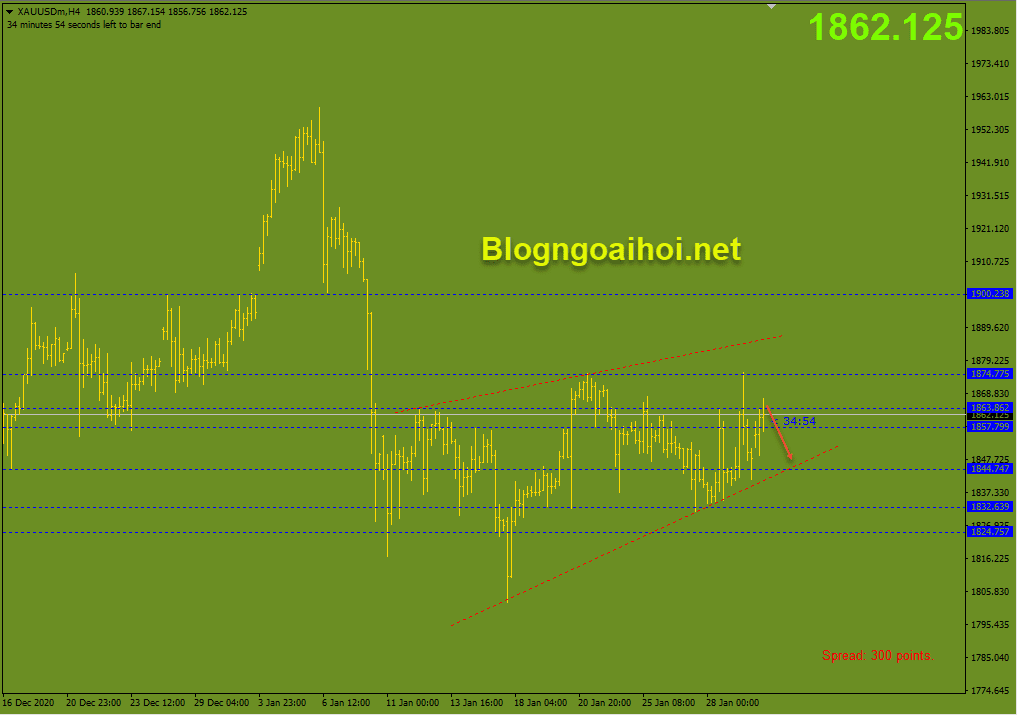 Chiến lược tham khảo : Vàng phiên âu sau 14:25 – Tiếp tục bán 1863-1865, Stop 1869, TP 1855-1850.