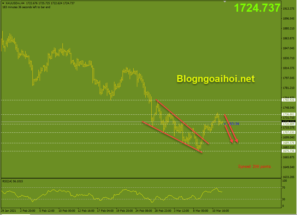 Chiến lược tham khảo : Vàng 12/3- Canh bán chủ đạo – Vùng bán vẫn nằm quanh 1735 với mục tiêu chốt lời 1720-1700, dừng lỗ 1742. Hoặc nếu vàng phá 1720 thì có thể canh bán đuổi theo. ( Phá 1720 – Canh hồi rồi bán đuổi). Cập nhật sau….