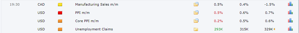 Hôm nay thị trường chờ đợi báo cáo PPI, Số đơn xin trợ cấp thất nghiệp vào 19:30. Và báo cáo “bán lẻ” vào ngày mai cũng được thị trường chờ đợi. Hiện các dữ liệu này đang được kỳ vọng tốt cho đồng USD.
