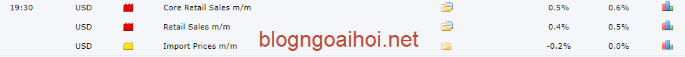 Hôm nay thị trường chờ đợi báo cáo bán lẻ của mỹ được công bố vào 19h30 theo giờ Việt Nam hiện đang được dự báo xấu cho USD. Khi doanh số bán lẻ dự kiến là 0.4% so với kỳ trước là 0.5%, bán lẻ lõi dự kiến là 0.5% so với 0.6% của kỳ trước.