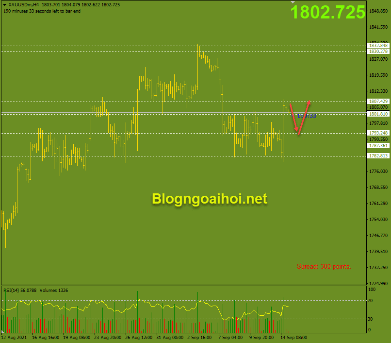 Chiến lược tham khảo : Vàng 15/9 sau 19:40- Bán 1808, Stop 1813, TP 1795. Và canh mua quanh 1793, dừng lỗ khi đóng nến H1 dưới 1790, TP 1805.
