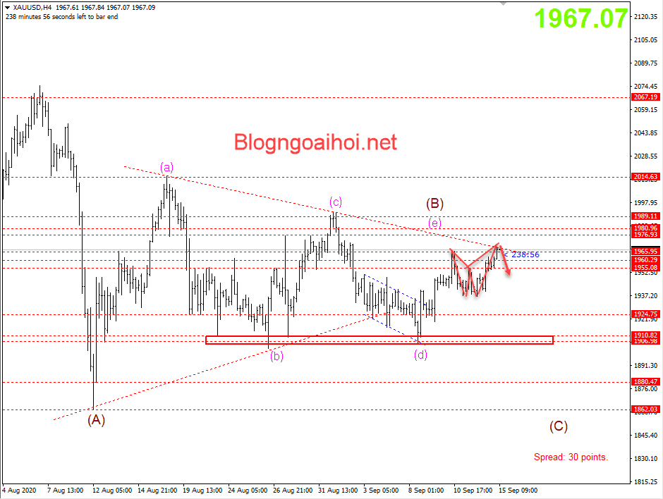 Cập nhật Vàng phiên âu sau 13:00 – Bán 1967-1969, Stoploss 1972, TP 1960-1955.