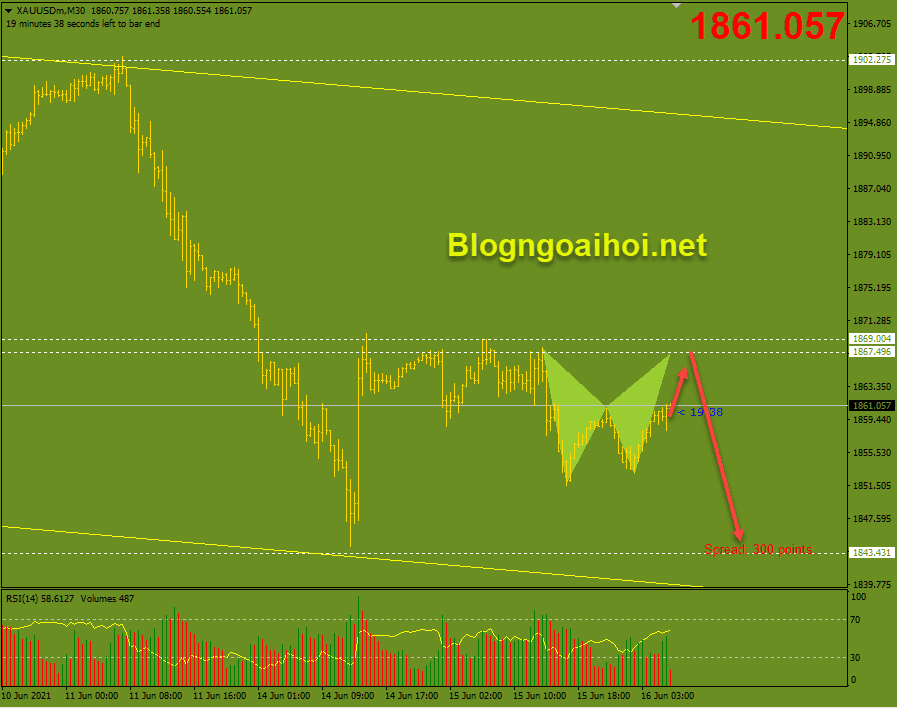 Chiến lược tham khảo : Vàng phiên âu 16/6 sau 13:40- Bán 1867, Stop 1872, TP 1845. (Cập nhật lại thay đổi trên group telegram : Blog ngoại hối)