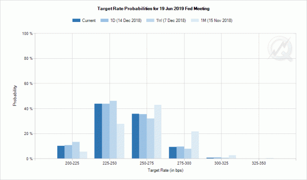 Và tất nhiên, điều quan trọng nhất là các dự báo kinh tế mới của Fed, bao gồm tăng trưởng, lạm phát, lãi suất quỹ liên bang và lãi suất dài hạn. Các quyết định của FOMC xét cho cùng là khá khoa học. Nhưng tính đến thời điểm hiện tại, hợp đồng tương lai của quỹ Fed chỉ định giá khoảng 46% cơ hội lãi suất quỹ liên bang ở mức 2,50-2,75% trở lên sau cuộc họp FOMC tháng 6. Đó là, có ít hơn 50% cơ hội tăng lãi suất trong nửa đầu. Các nhà đầu tư khá thiếu thuyết phục Dự đoán của Fed nên cung cấp đủ hướng dẫn cho kỳ vọng của thị trường. Và họ cũng sẽ thiết lập giai điệu của thị trường ít nhất là qua tháng Một.