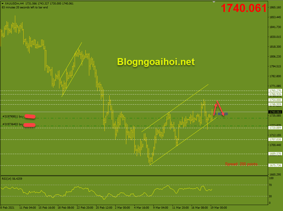 Chiến lược tham khảo : Vàng 19/3 – Mua quanh 1725, Stop 1719, TP 1740.