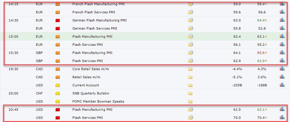 Ngày hội dữ liệu PMI sản xuất và dịch vụ được lên lịch công bố vào chiều và tối nay dự kiến có tác động đến Vàng. Các dữ liệu kinh tế tốt sẽ gây áp lực giảm lên Vàng và ngược lại.