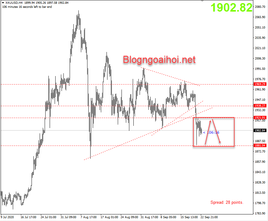 Chiến lược tham khảo : Vàng 23/9- giao dịch mua bán 2 đầu ở vùng range 1925-1880 (Nếu có). Chúng tôi cập nhật thêm khi giá chạy đến các điểm này, hiện tại không có tín hiệu mua bán.