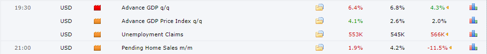 Theo tuyên bố mới nhất của mình, Cục Dự trữ Liên bang sẽ tiếp tục in đô la và giảm giá đồng tiền của mình. Tuy nhiên, chỉ chưa đầy 24 giờ sau tuyên bố này, dữ liệu Tổng sản phẩm quốc nội trong quý đầu tiên đã khiến bạn phải suy nghĩ lại. Trong khi GDP toàn phần cho thấy mức tăng trưởng hàng năm 6,4% – nằm trong dự đoán – nhưng các thành phần của GDP đang chỉ ra nền kinh tế đang nóng lên và có lẽ phát triển quá nóng. Điều đó có thể thúc đẩy đồng đô la.