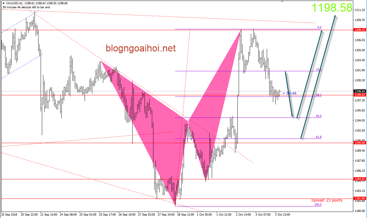 Chiến lược tham khảo : Vàng 4/10: Bán quanh 1202/1204, Stop 1207, TP 1195. Và canh mua quanh 1195. Cập nhật sau ở group telegram.