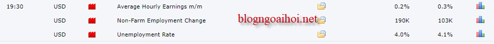 Thị trường có lẽ chú ý nhiều hơn đến báo cáo “Thu nhập trung bình theo giờ ” vì gần đây số đơn trợ cấp thất nghiệp giảm kỷ lục – tỷ lệ thất nghiệp giảm mạnh nhưng thu nhập bình quân thì lại không tăng . Đó là lý do thị trường đang theo dõi chặt thu nhập bình quân theo giờ.