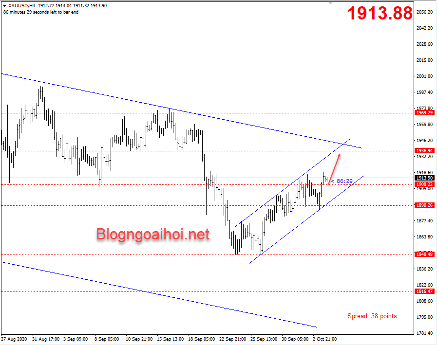 Vàng đang di chuyển trong kênh giá tăng nhỏ sau khi di chuyển ổn định trên 1900, chúng tôi kỳ vọng vàng tiếp tục tăng giá trong ngày hôm nay lên vùng 193x.