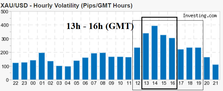Như phần trên đã giới thiệu, khung thời gian phù hợp để giao dịch là từ 12 giờ đến 19 giờ tương ứng với 19 giờ đến 02 giờ sáng theo giờ Việt Nam. Nhưng lý tưởng nhất để trader có thể tận hưởng sự dao động mạnh mẽ của VÀNG là trong thời gian: